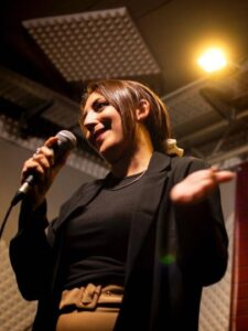 Nome plausibilmente da spacciatore e contro ogni pronostico sono una donna, metà iraniana (ce l’ho tutte io!). Vivo e nasco a Roma ma non ne sono nè fiera nè felice. Ho due lauree e sto ancora cercando di capire quale sia la più inutile. Sono frustrata per tutto questo e la stand up comedy è il mio luogo di sfogo. Il precariato è la mia vita, una vera e propria vocazione, ma non parlo solo di questo. Racconto anche di cose divertenti … come l’aborto!